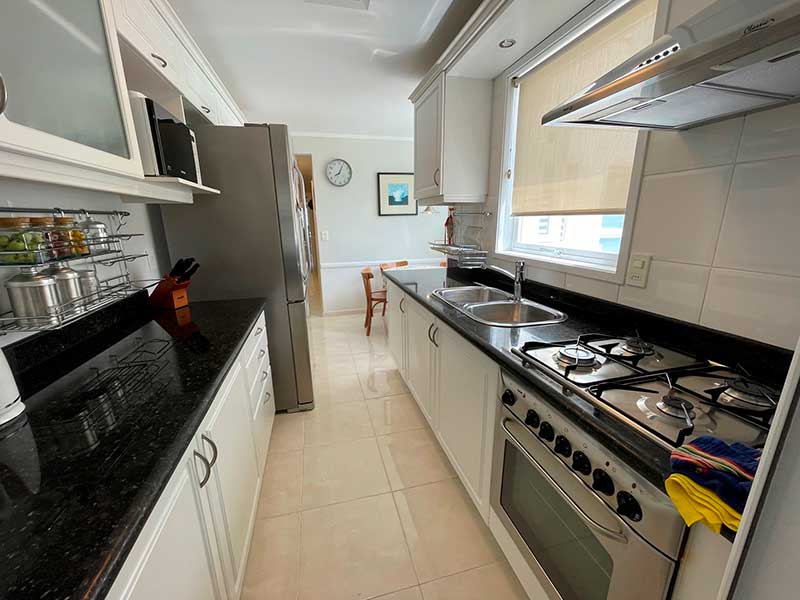 Cocina con comedor diario, lavadero completo, tender y entrada de servicio.