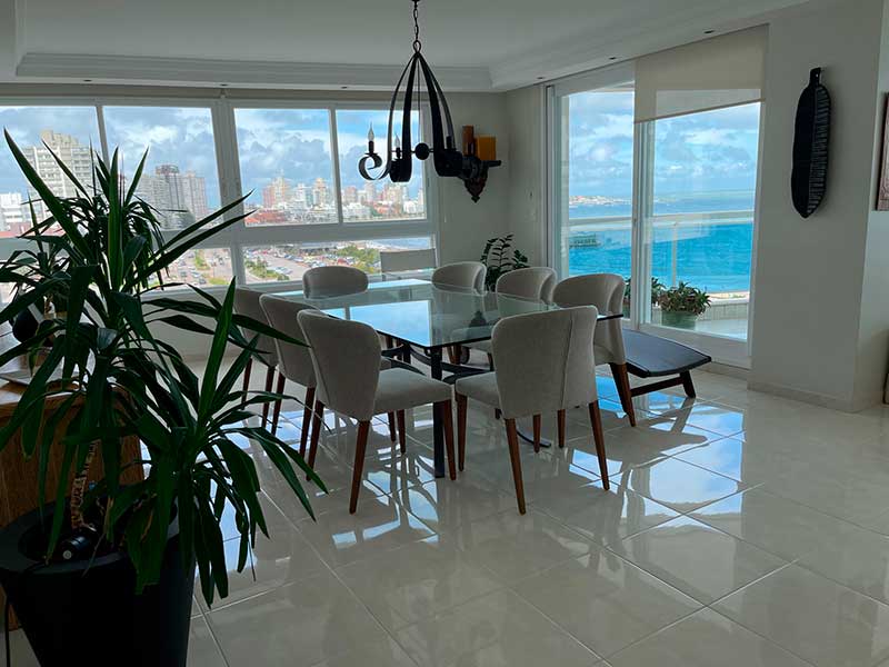 Cuenta con 3 dormitorios en suites, todos con vista, toilete, gran living comedor con salida a la amplia terraza y vista al mar increíble desde cualquier punto del living-comedor.